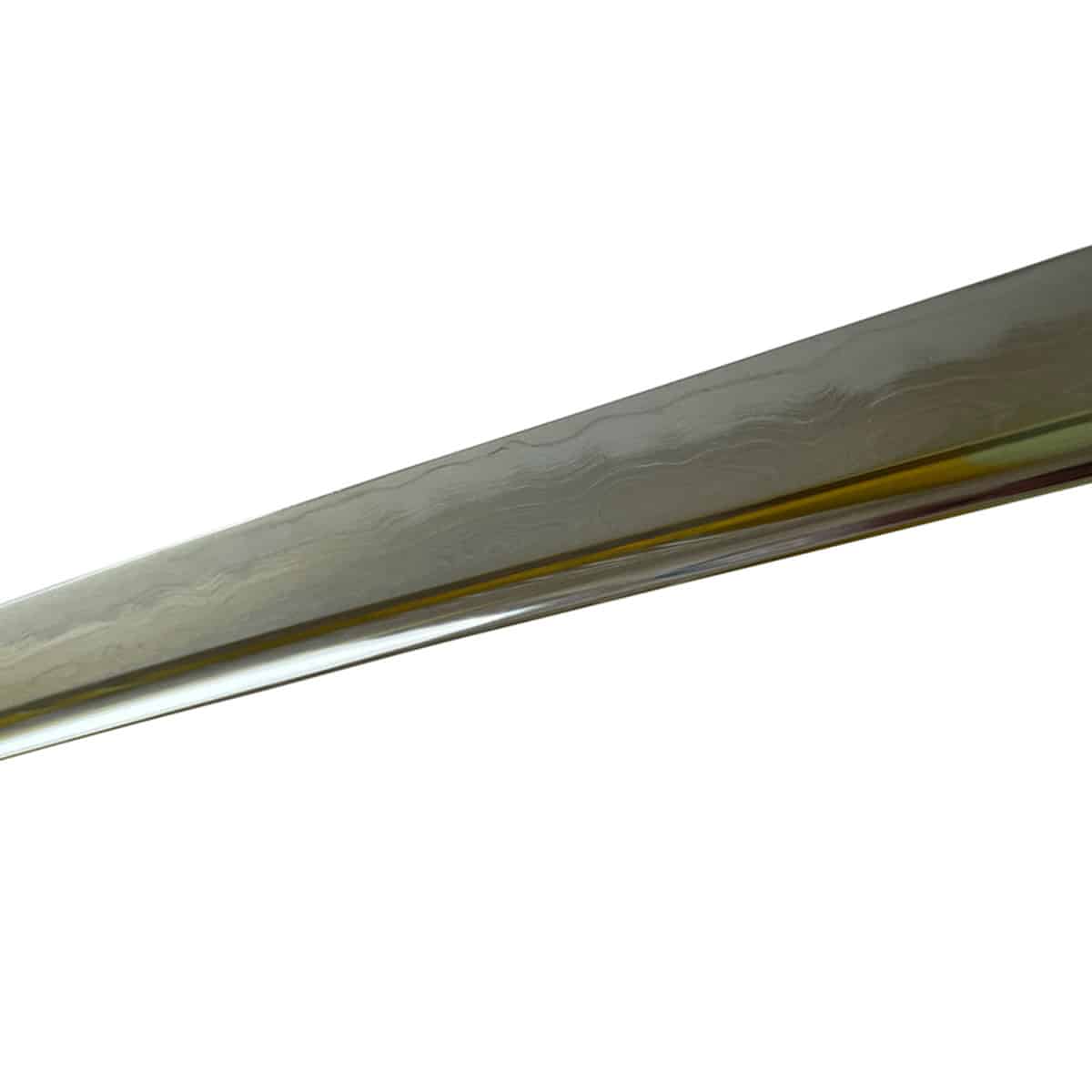 Die Klinge entspricht der Standardausführung mit gefaltetem K120C Pulverstahl mit einer Klingenlänge von ca. 75,6 cm und Ko-Kissaki.