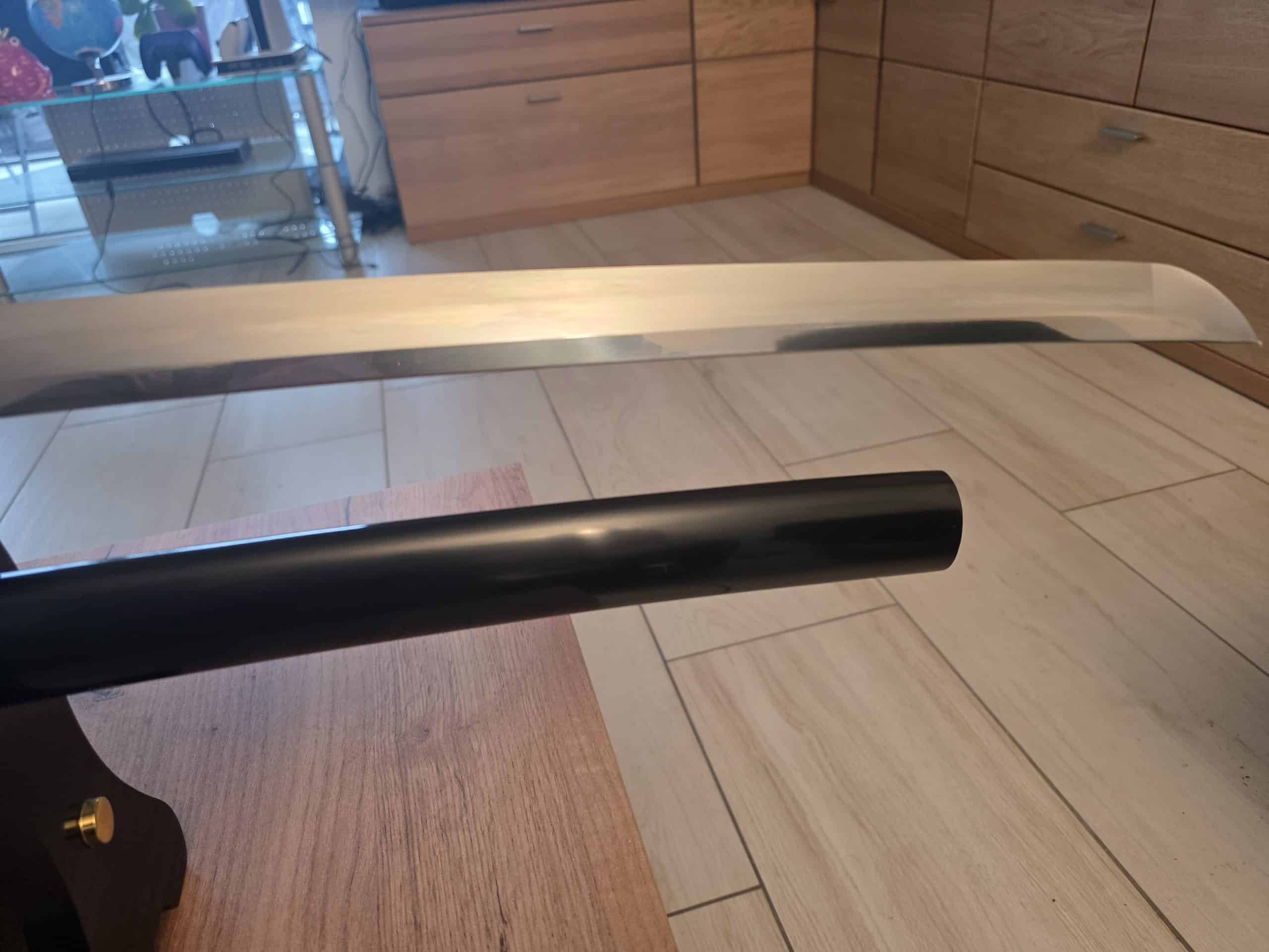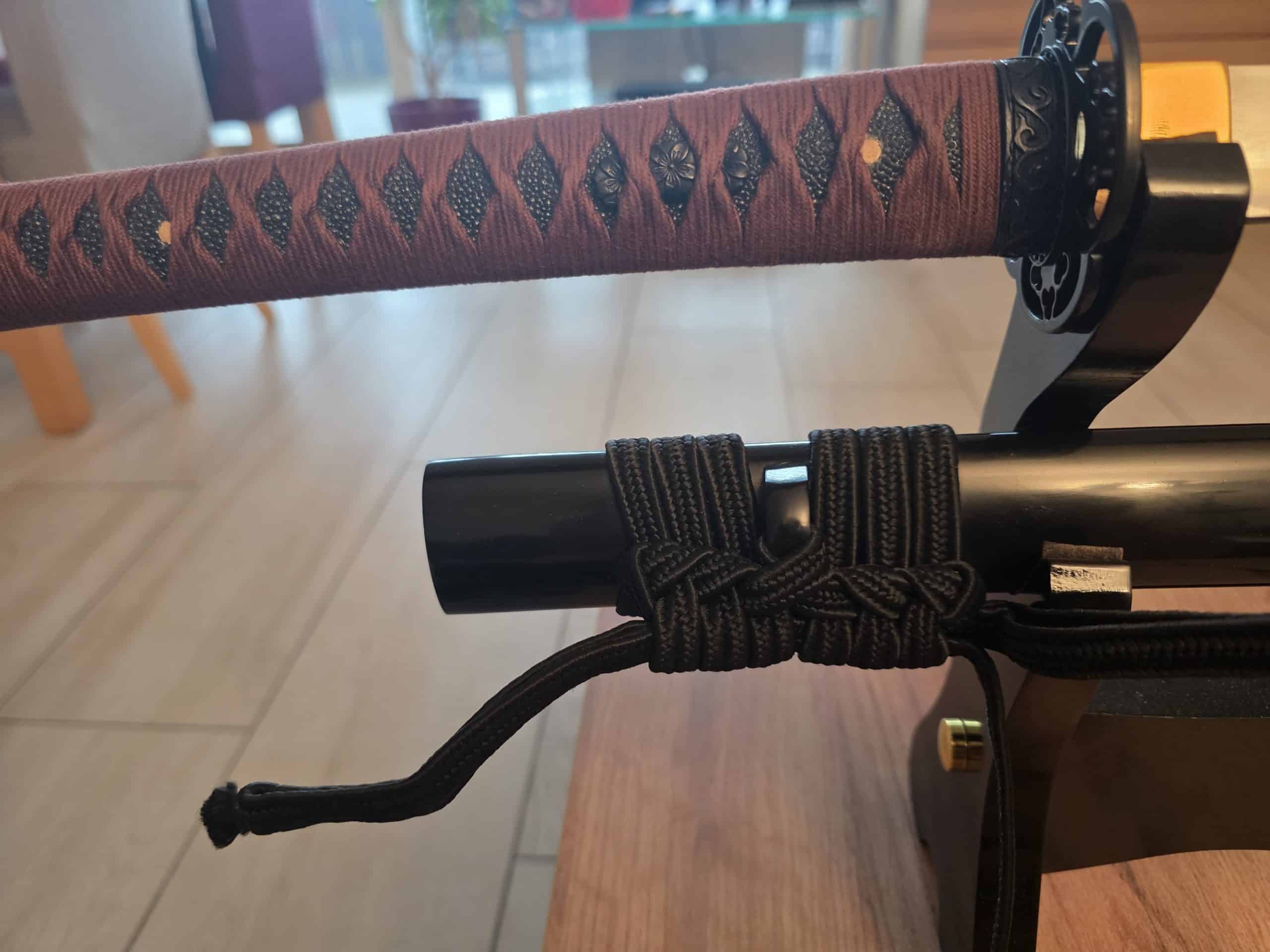 Das Matsu Katana in der Competition Edition verfügt darüber hinaus über ein rotes Griffband, schwarze Same, geschwärzte Menuki in Optik der Gunto-Menuki und eine Saya mit schwarzer Hochglanzlackierung.