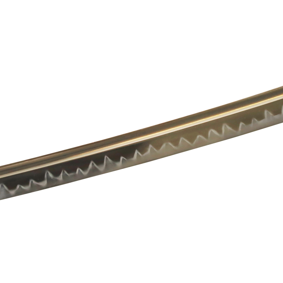 Das Schwert besitzt eine Shinogi Zukuri Klinge aus T10 Stahl mit Lehmhärtung. Sie ist scharf geschliffen und hat eine Härte von 60 HRC an der Schneide. Das Schwert ist für Schnittübungen mit Tatami Matten und Bambus ausgelegt. Während der Politur wurde die Schneide auf die maximale Schärfe gebracht.